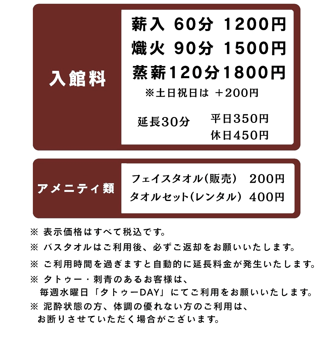 本格薪サウナ、2種類の地下水かけ流し水風呂、自然を感じる内外気浴、現役熱波師によるロウリュサービスをご用意しています。