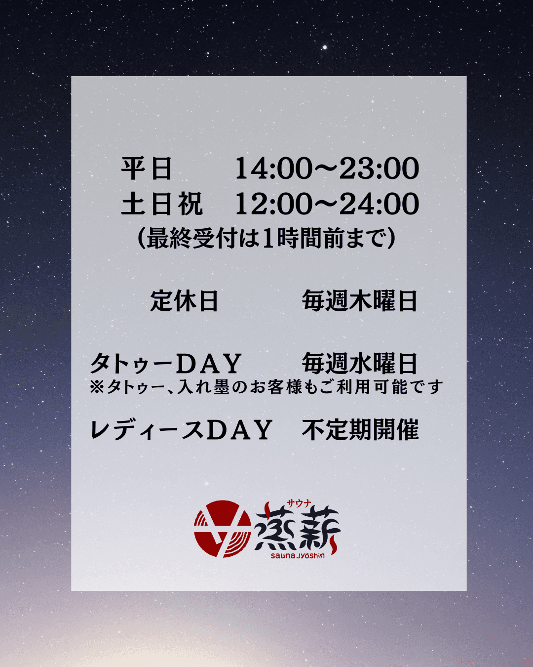 男性専用サウナ専門店 サウナ蒸薪(じょうしん)